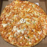 Topped with BBQ sauce, mozzarella, and chicken meat.